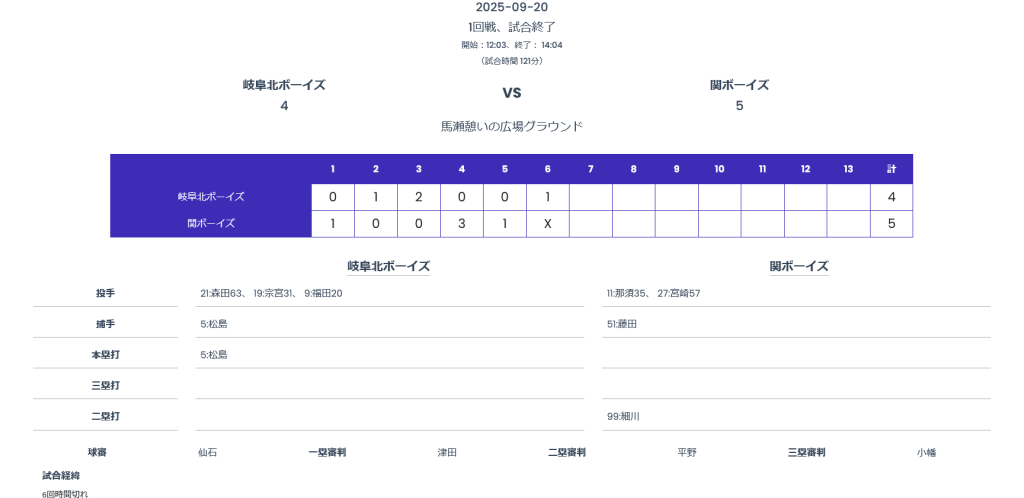 関係者の皆様、グラウンド整備、試合運営ありがとうございました。