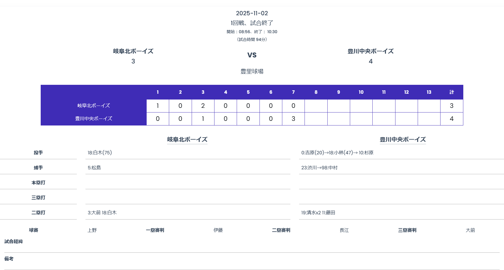 対戦相手 豊川中央ボーイズ様